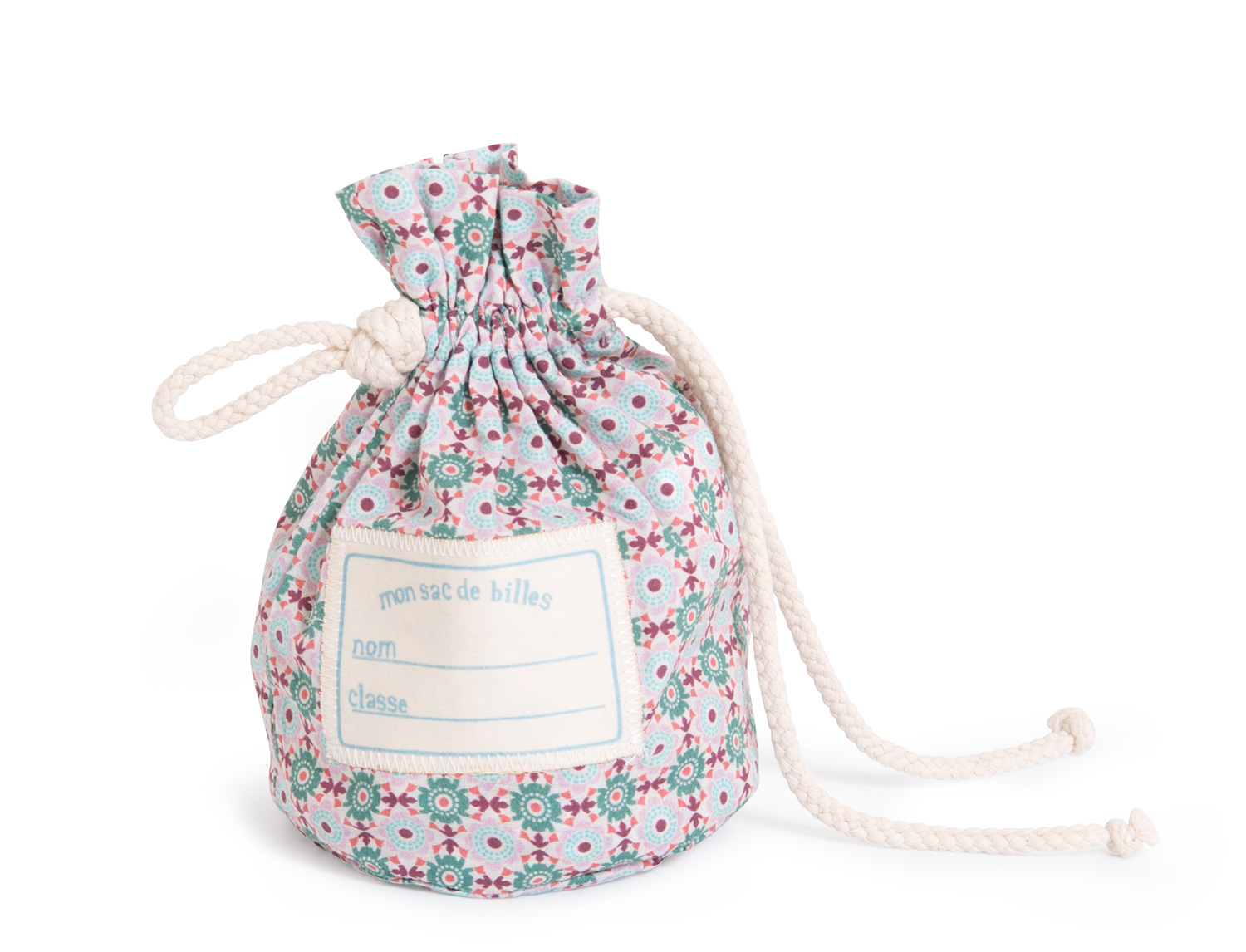 Materials/Fabrics: Bag – cotton, marbles – glass