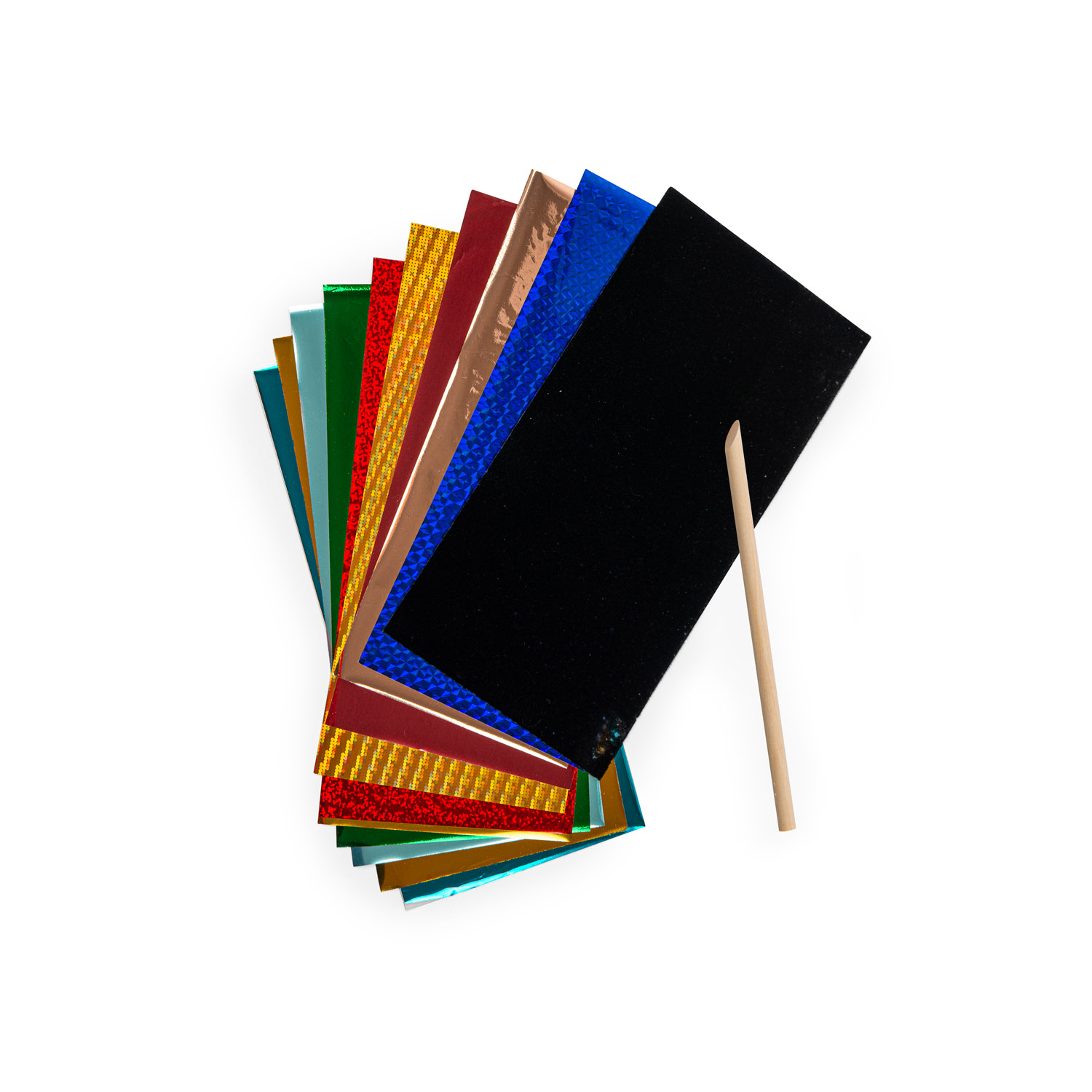 Features: 5 assorted fantasy boards. Use the 9 sheets of coloured foil to complete and personalise each illustration. (wooden tool provided)