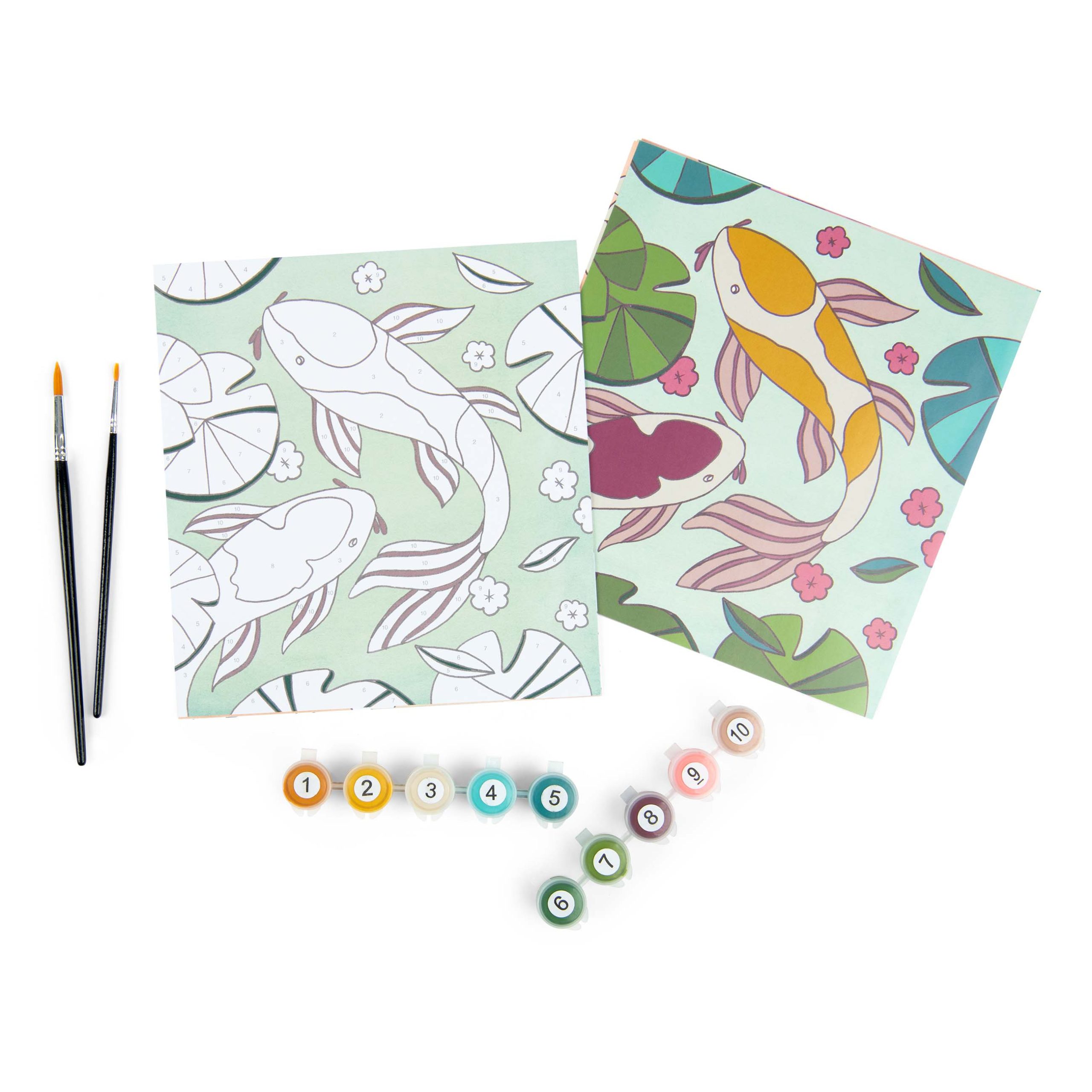 Follow the numbers to match each section with the right colour and watch your masterpiece take shape! This set includes 4 beautifully illustrated pictures by Cécile Blindermann, 2 brushes, and 10 pots of paint.