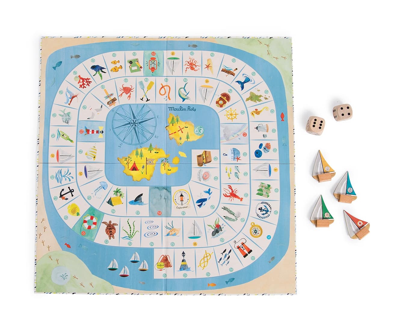 Features: Large wooden dice, 4 sailboat shaped tokens. English game rules included