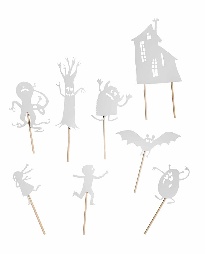 Features: Black card silhouettes on wooden picks, this version glows in the dark