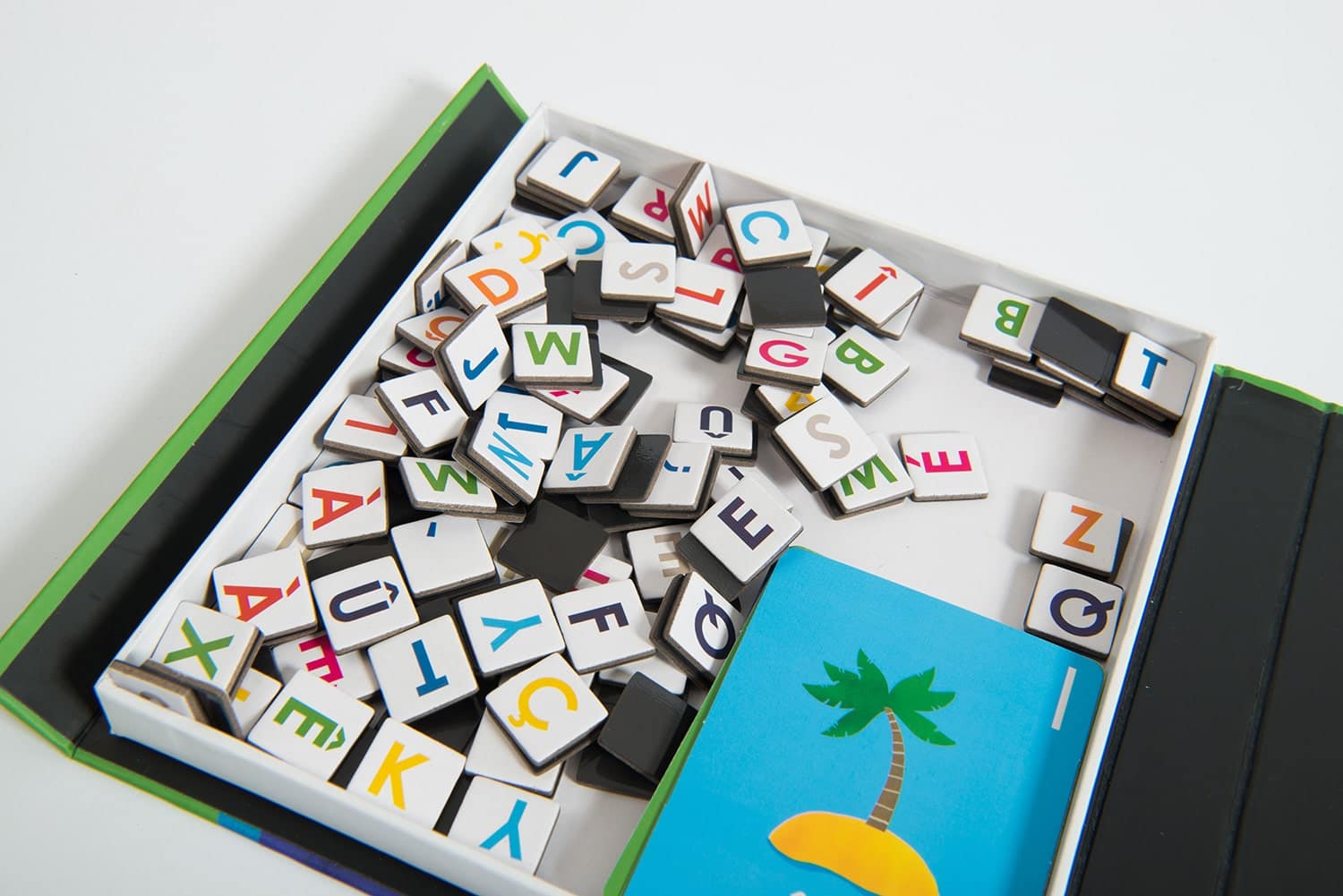 Features: 26 illustrated cards in French and English and a set of 168 magnetic letters.